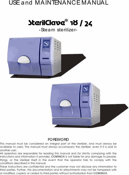 Download COMINOX Sterilclave 18-24 Anleitung Englisch (68 Seiten) 15.90 EUR