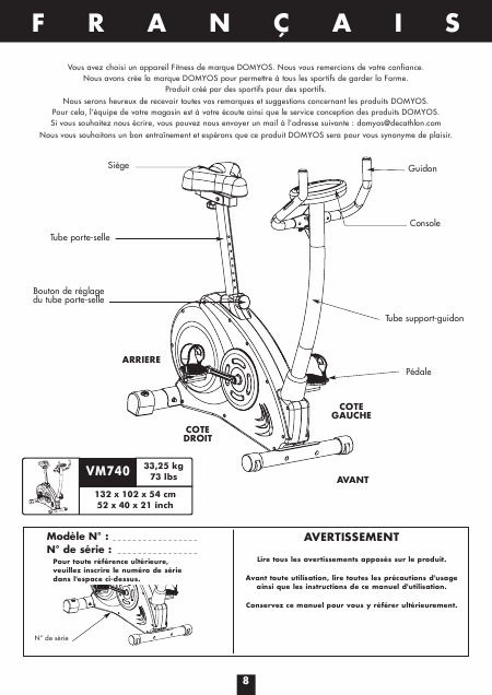 DOMYOS VM 740 Manuale di installazione Francese