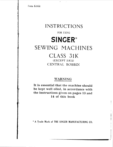 Scaricare SINGER 31 K 15 (31K15) Istruzione Inglese (18 Pagine) 12.90 EUR