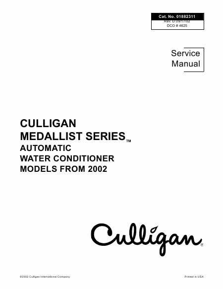 Download CULLIGAN Medallist Series Serviceanleitung Englisch (41 Seiten) 39.90 EUR