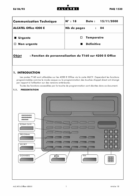 Scaricare ALCATEL T160 (4200 E Office) Guida introduttiva Francese (4 Pagine) 12.90 EUR