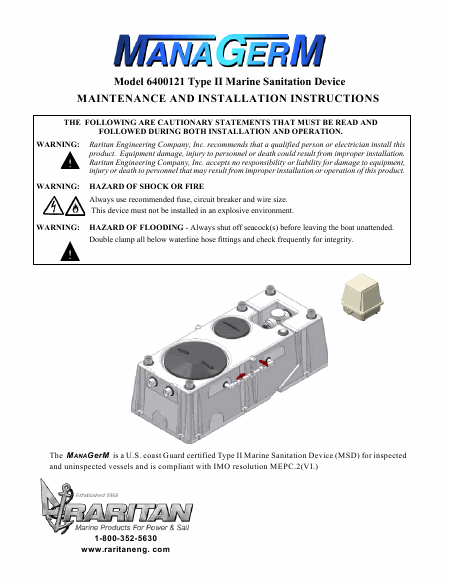 MANAGERM Model 6400121 Type II Manuale di installazione Inglese