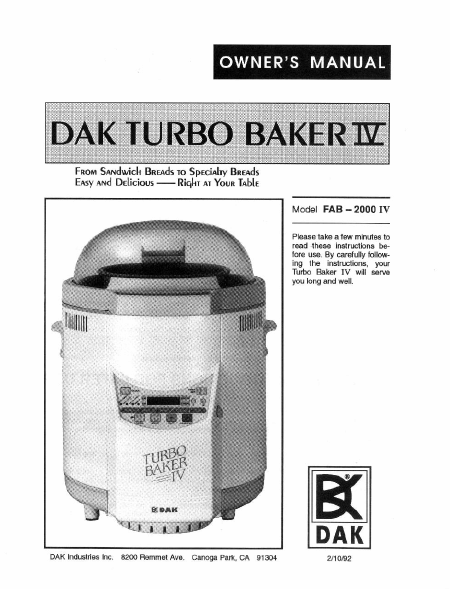 DAK Turbo Baker IV (FAB-2000) Anleitung Englisch