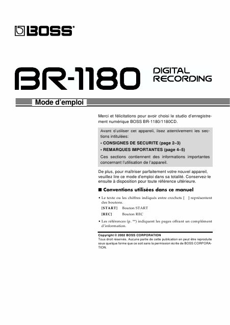 Baixar BOSS BR-1180 Instruções Francês (210 Pages) 12.90 EUR