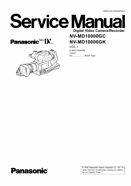 PANASONIC NV-MD10000GC Manual de serviço Inglês