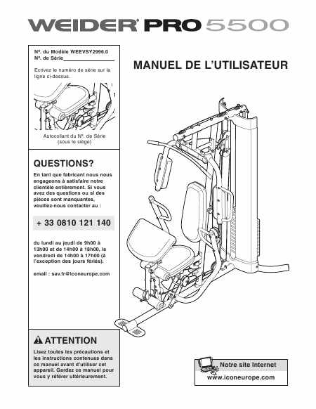 WEIDER Pro 5500 (WEEVSY2996.0) Manuale di installazione Francese