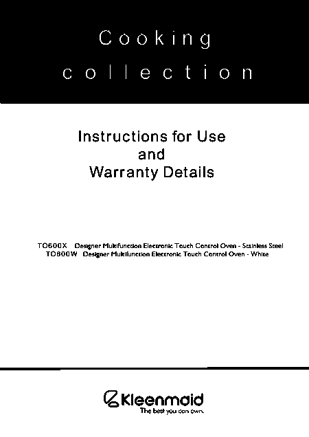 Telecharger KLEENMAID TO 600 W (TO600W) Mode emploi Anglais (32 Pages) 39.90 EUR