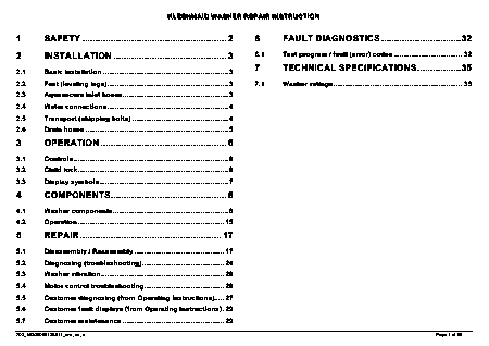 Telecharger KLEENMAID KFL 2000 (KFL2000) Manuel de service Anglais (55 Pages) 39.90 EUR