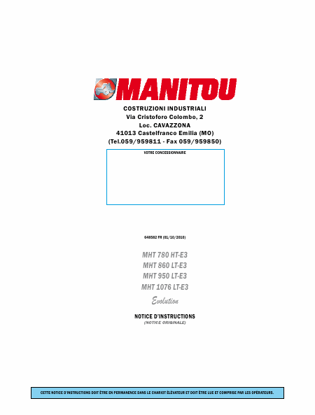 MANITOU MHT 780 HT-E3 Anleitung Französisch