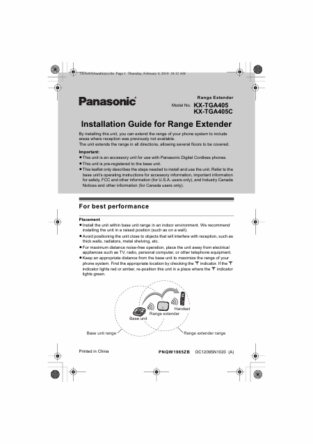 Download PANASONIC KX-TGA405 Installationsanweisungen Englisch (4 Seiten) 12.90 EUR