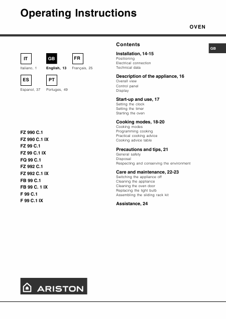 Descargar ARISTON FZ 99 / 990 Guía del usuario Francés (12 Páginas) 12.90 EUR