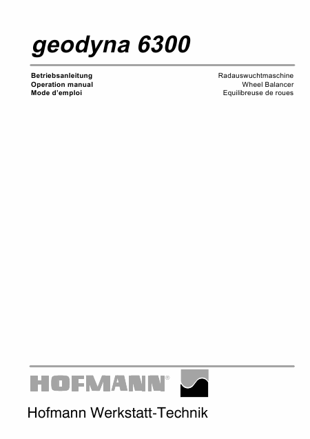 Baixar HOFMANN Geodyna 6300 Instruções Alemão (128 Pages) 39.90 EUR