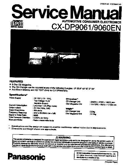 PANASONIC CX-DP9060EN Manuel de service Anglais