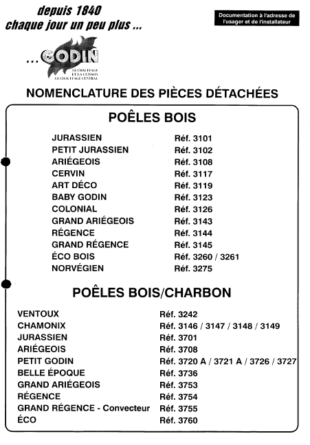 GODIN 3101 JURASSIEN Lista de piezas de repuesto Francés