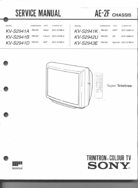 SONY KV-S2943 (KVS2943) Serviceanleitung Englisch