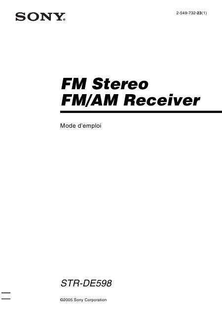 SONY STR-DE598 Anleitung Französisch