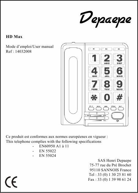DEPAEPE HD MAX Istruzione Francese