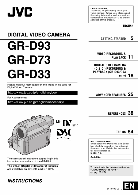 JVC GR-D93 Users Guide English