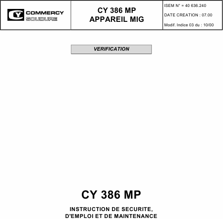 COMMERCY CY 386 MP Users Guide French