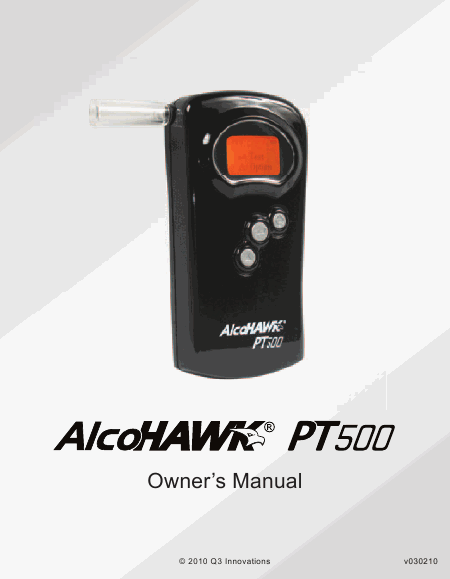 ALCOHAWK PT500 Users Guide English