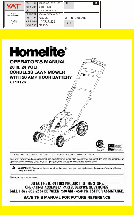 HOMELITE UT13126 Anleitung Englisch