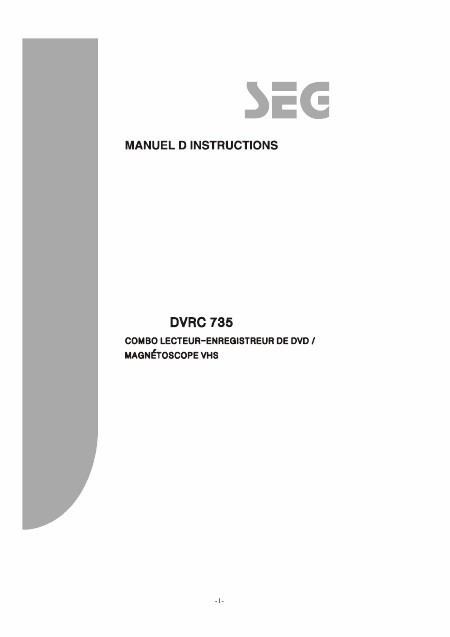 Scaricare SEG DVRC 735 Istruzione Francese (52 Pagine) 15.90 EUR