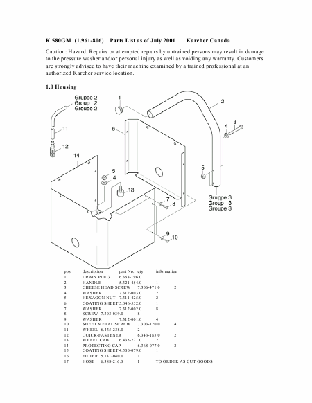 KARCHER K 580 GM Ersatzteile Englisch