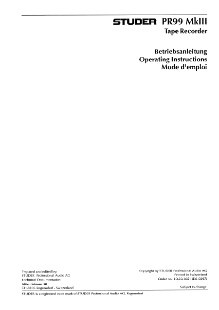 Baixar REVOX STUDER PR99 MkIII Instruções Francês (18 Pages) 15.90 EUR