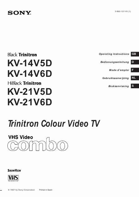 Descargar SONY KV-21V5D Guía del usuario Inglés (50 Páginas) 12.90 EUR