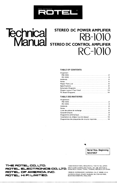 ROTEL RC-1010 (RC1010) Manual de serviço Inglês