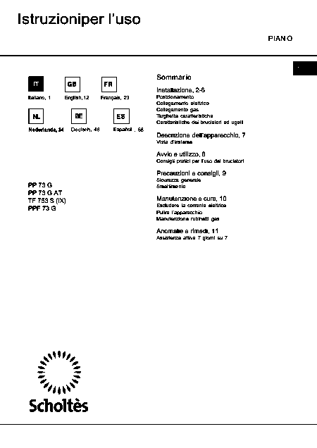 Telecharger SCHOLTES PP 73 G AT Mode emploi Anglais (12 Pages) 12.90 EUR