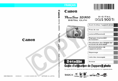 Telecharger CANON SD900 / Digital Ixus 900 TI Mode emploi Français (0 Pages) 12.90 EUR