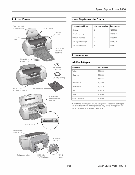 Descargar EPSON Stylus Photo R800 Guía del usuario Inglés (16 Páginas) 12.90 EUR