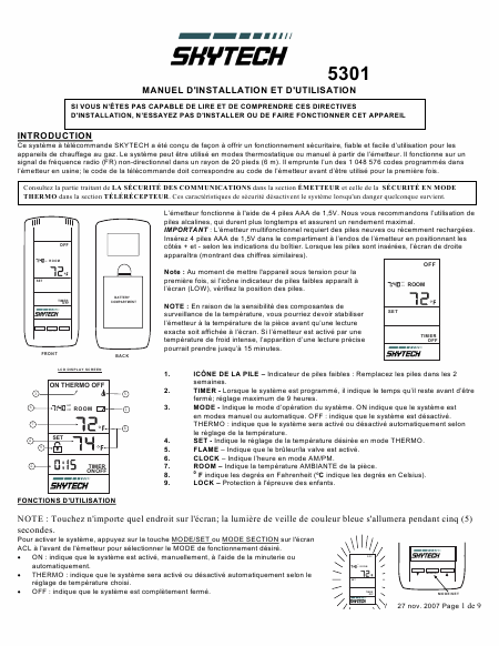 Scaricare SKYTECH 5301 (SKY-5301) Manuale di installazione Francese (9 Pagine) 12.90 EUR