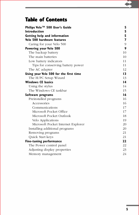 PHILIPS Velo 500 Users Guide English