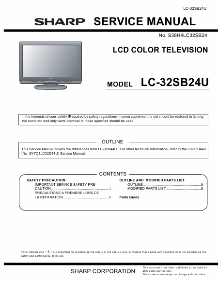 SHARP LC-32SB24U Manuale di servizio Inglese