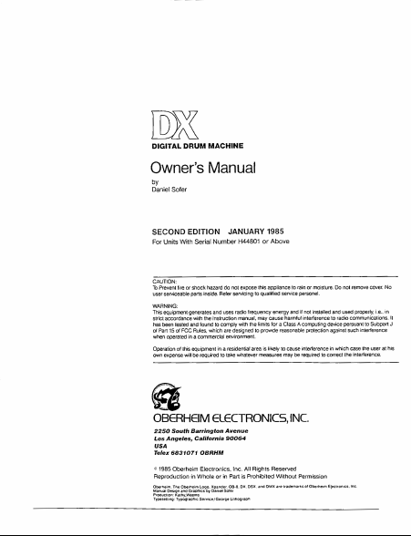 OBERHEIM DX (2nd Edition) Instruções Inglês