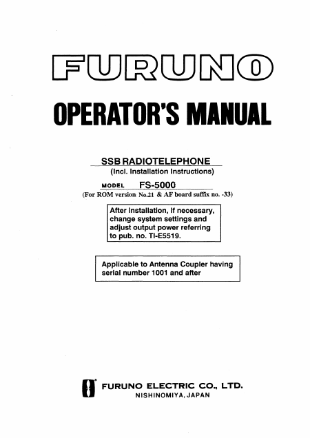 FURUNO FS-5000 (FS5000) Istruzione Inglese