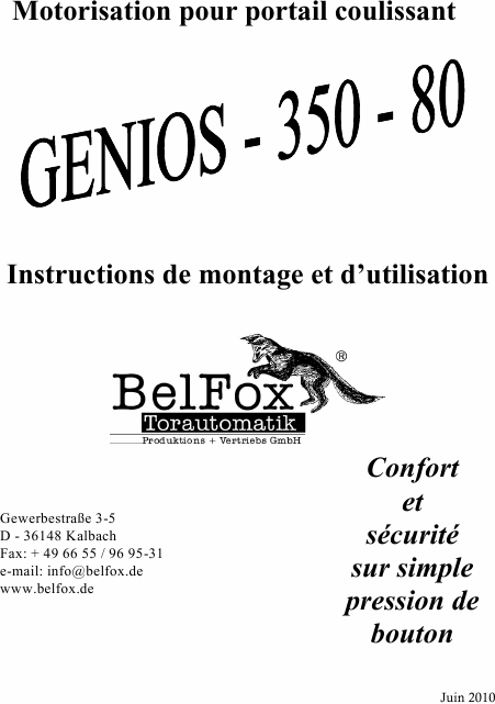 Download BELFOX Genios 350-80 Users Guide French (29 Pages) 39.90 EUR
