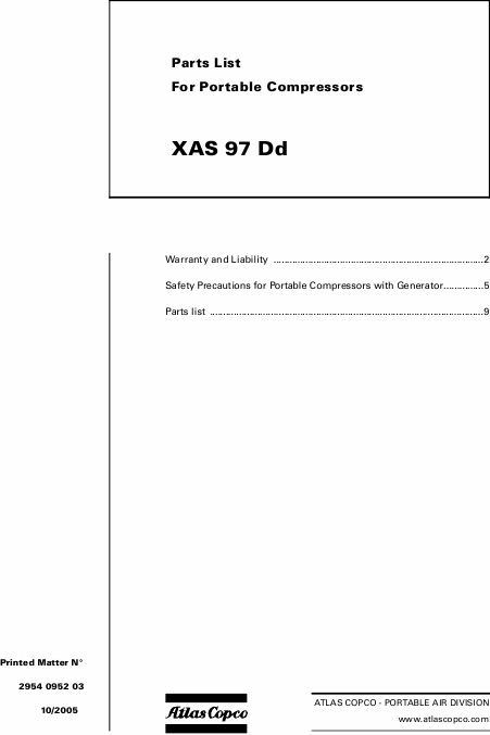 Download ATLAS COPCO XAS 97 DD Spare Parts (IPL) English (183 Pages) 15.90 EUR