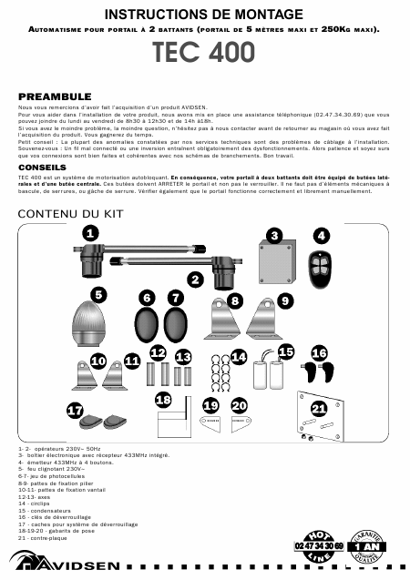 Scaricare AVIDSEN TEC400 Manuale di installazione Francese (8 Pagine) 39.90 EUR