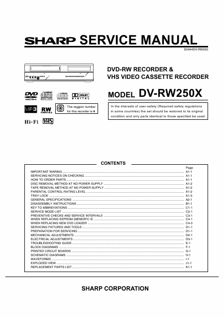 Scaricare SHARP DV-RW250X Manuale di servizio Inglese (120 Pagine) 15.90 EUR