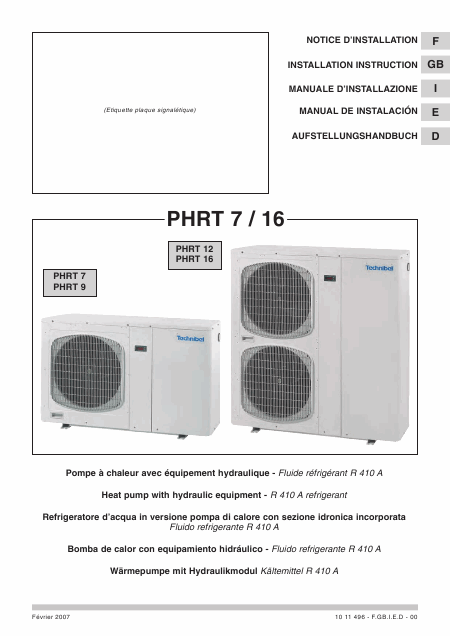 TECHNIBEL PHRT 16 Manual de instalación Francés