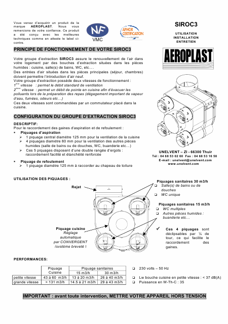 AEROPLAST Siroc3 Istruzione Francese