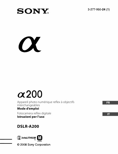 SONY DSLR-A200 (Alpha 200) Anleitung Französisch