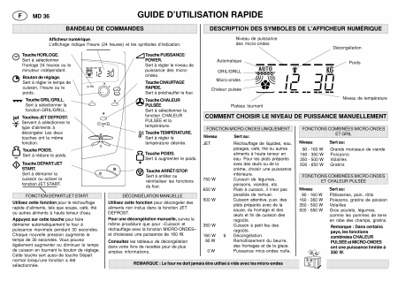 WHIRLPOOL MD36 Kurzanleitung Französisch