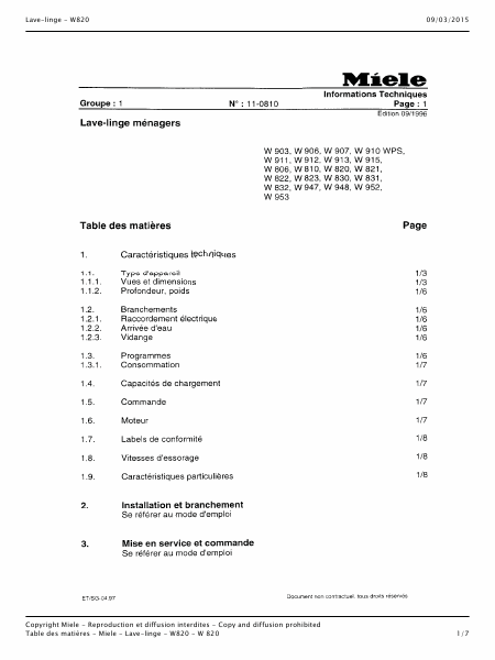 Download MIELE W 820 Service Manual French (130 Pages) 39.90 EUR