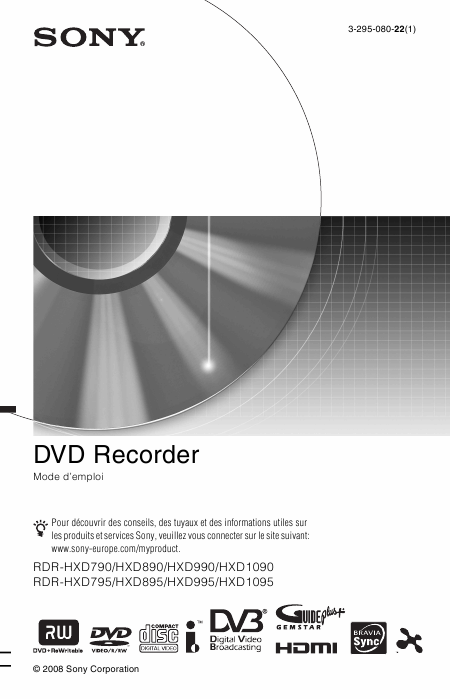 Telecharger SONY RDR-HXD990 (RDRHXD990) Mode emploi Français (193 Pages) 15.90 EUR
