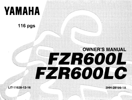 YAMAHA FZR 600 L (FZR600L) Istruzione Inglese