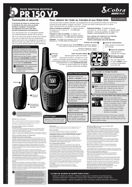 Baixar COBRA PR 150 VP (PR150) Instruções Francês (1 Pages) 12.90 EUR